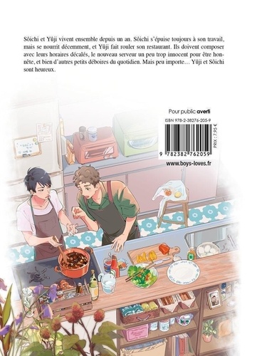 Sôichi et Yûji vivent ensemble depuis un an. Sôichi s'épuise toujours à son travail, mais se nourrit décemment, et Yûji fait rouler son restaurant. Ils doivent composer avec leurs horaires décalés, le nouveau serveur un peu trop innocent pour être honnête, et bien d'autres petits déboires du quotidien. Mais peu importe... Yûji et Sôichi sont heureux.