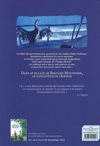 Dans le sillage de Bernard Moitessier, le navigateur de légende En 1969, Bernard Moitessier, grand favori du Golden Globe Challenge, abandonne subitement la course maritime. Il ne laisse pour explication qu'un message énigmatique intercepté au large de l'Afrique du Sud : " Je continue parce que je suis heureux en mer et peut-être aussi pour sauver mon âme ".