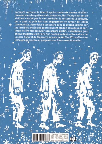 Lorsque Hur Young-chul revoit enfin la lumière après trente-six années perdues dans les geôles sudcoréennes, il a peine à croire à ce qui lui arrive : heureux de respirer l'air vif du dehors, il n'en est pas moins perdu dans un monde qui lui est devenu étranger. Dans le premier tome, le dissident part à la recherche de ceux qui ont forgé son destin. Au fil de cette quête affleurent les réminiscences : enfance à la campagne, mariage déçu, naissance de son engagement politique... Interrompu au déclenchement de la guerre civile, le récit retrace dans ce deuxième volume les horreurs de cette guerre fratricide en même temps que l'engagement d'un homme qui a tout sacrifié pour ses idées. Les mots et les souvenirs deviennent alors pour ce vieillard courbé par la vie carcérale, la solitude et la torture l'unique moyen de continuer son combat.