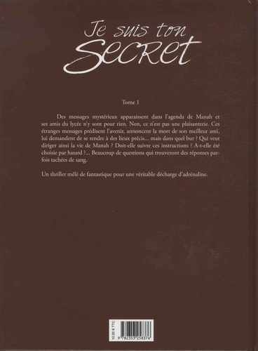 Des messages mystérieux apparaissent dans l'agenda de Manah et ses amis du lycée n'y sont pour rien. Non, ce n'est pas une plaisanterie. Ces étranges messages prédisent l'avenir, annoncent la mort de son meilleur ami, lui demandent de se rendre à des lieux précis... mais dans quel but ? Qui veut diriger ainsi la vie de Manah ? Doit-elle suivre ces instructions ? A-t-elle été choisie par hasard ? ... Beaucoup de questions qui trouveront des réponses parfois tachées de sang. Un thriller mêlé de fantastique pour une véritable décharge d'adrénaline.