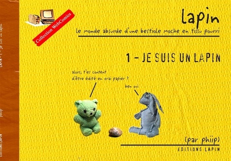 Premier tome des aventures de lapin, ce livre reprend les 200 premiers comics strips dessinés par Phiip dans son webcomic éponyme quotidien. Vous suivrez les aventures passionnantes d'un lapin libidineux, d'une ourse verte un peu psychotique, d'un caillou tétraplégique, et d'un canard en bois. Avec des histoires de cailloux paraplégiques qui veulent apprendre à conduire, des lapins qui mettent toute leur énergie à ne rien faire au boulot, un ordinateur qui refuse qu'on lui tape sur le clavier, et un ours énorme avec un énorme zguègue. Humour absurde pendant vers le débile garanti. Indispensable donc.