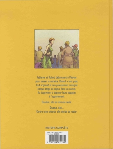 Fabienne et Roland débarquent à Palavas pour passer la semaine. Roland a tout payé, tout organisé et scrupuleusement consigné chaque étape du séjour dans un carnet. Ils s'apprêtent à déposer leurs bagages à l'appartement. Soudain, elle se retrouve seule. Stupeur, déni... Contre toute attente, elle décide de rester.