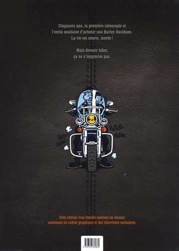 Cinquante ans, la première coloscopie et l'envie soudaine d'acheter une Harley-Davidson. La vie est courte, merde ! Mais devenir biker, ça ne s'improvise pas. Cette édition luxe limitée contient un dossier contenant un cahier graphique et des interviews exclusives.