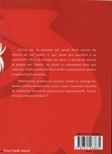 Kirino est un pianiste qui pense avoir atteint les limites de son talent, et qui passe ses journées à se morfondre. Pour se changer les idées, il décide de mettre le grapin sur Takase, un jeune et talentueux élève qui l'admire. Voilà qui devrait faire du bien à son amour-propre et apaiser sa frustration... Néanmoins, si dans un premier temps ce manège lui donne entière satisfaction, petit à petit, l'adorable docilité de Takase lui devient de plus en plus indispensable. Tel est pris qui croyait prendre ?