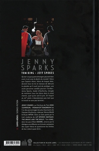 Qu'est-ce que quatre étrangers peuvent bien avoir à voir avec le destin du monde ? Alors que Captain Atom, héros de longue date de DC, devient hors-la-loi et menace de détruire la planète qu'il avait juré de protéger, une seule personne semble pouvoir l'arrêter : Jenny Sparks, leader de The Authority, chargée de maintenir tous les héros dans le droit chemin, quel qu'en soit le prix. Sans hésiter, l'esprit du 20e siècle fonce au combat et n'abandonnera pas tant que le travail ne sera pas terminé... JENNY SPARKS, ou l'écriture de Tom KING (SUPERGIRL - WOMAN OF TOMORROW) de l'un des personnages les plus fascinants de l'équipe d'Authority, crées per Warren ELLIS & Bryan HITCH. Dans ce récit porté par le trait moderne de Jeff SPOKES (BATMAN : THE BRAVE AND THE BOLD), Tom KING, dans les pas d'Alan MOORE, amorce par le dialogue une réflexion sur la toute-puissance des super-héros et questionne les limites de leur statut quasi divin.