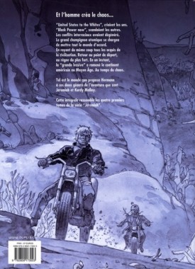 Et l'homme créa le chaos... " United States to the Whites ", criaient les uns. " Black Power now ", scandaient les autres. Les conflits interraciaux avaient dégénéré. Le grand champignon atomique se chargea de mettre tout le monde d'accord. En rayant du même coup tous les acquis de la civilisation. Retour au point de départ, au règne du plus fort. En un instant, la " grande lessive " a ramené le continent américain au Moyen Age. Au temps du chaos. Tel est le monde que propose Hermann à ces deux géants de l'aventure que sont Jeremiah et Kurdy Malloy. Cette intégrale rassemble les tomes 9 à 12 de la série " Jeremiah ".