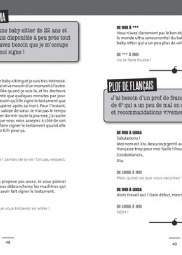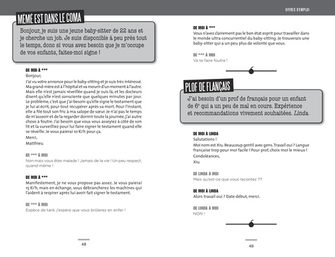 Lorsque John Lindsay a créé DontEvenReply.com, son site est vite devenu un véritable phénomène. En se faisant passer pour un client ou un vendeur, l'auteur répond à une multitude de petites annonces : voitures, offres d'emploi, covoiturage faisant des offres absurdes à des internautes d'une naïveté incroyable. Les mails de ce "connard", comme l'auteur se qualifie lui-même, sont à pleurer de rire et on ne manque pas de se délecter de la crédulité des personnes victimes de ses canulars. Les petites annonces deviennent des histoires où les héros sont des déménageurs tétraplégiques, un poisson rouge regardant Les Experts ou encore un ex-chauffeur mercenaire au Moyen-Orient postulant pour exfiltrer une fillette d'un court de tennis deux fois par semaine... Cet ouvrage est le recueil de leurs conversations hallucinantes ; un livre aussi drôle que méchant !