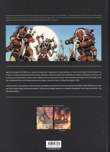 Un conquérant est né. A la mort du chercheur d'or John Carter, on découvre dans ses papiers un manuscrit à la légitimité douteuse. Ses lignes composent un texte contant une suite d'étranges et fascinants événements que Carter aurait lui-même vécus il y a des années... Projeté mystérieusement sur la planète Mars après s'être réfugié dans une grotte, John Carter y découvre un monde merveilleux mais aussi terrifiant. Cette planète guerrière est divisée entre les martiens verts - étranges créatures à l'apparence reptilienne - et les martiens rouges - parfaitement semblables aux terriens. Pour survivre sur cette terre hostile, Carter réalise qu'il peut user de sa faible gravité. Elle décuple ses forces et amplifie considérablement son agilité. Ses incroyables facultés attisent la curiosité autant qu'elles forcent l'admiration des autochtones. L'aventurier intègre alors le clan des martiens verts, où il est certes respecté mais toujours captif. Son destin bascule le jour où il rencontre la princesse Dejah Thoris, une martienne rouge dont il tombe éperdument amoureux. Peu à peu, John Carter va apprendre les coutumes de Mars et finir par entièrement s'impliquer dans le violent conflit qui agite cette planète sans jamais oublier Dejah Thoris, qu'il va tenter de retrouver par tous les moyens... La princesse de Mars est le premier tome du célèbre Cycle de Mars imaginé par le romancier Edgar Rice Burroughs. Dans ses récits de genre où l'aventure et le mystère sont rois, il ouvre les portes de mondes merveilleux aux parfums exotiques, riches d'incroyables bestiaires et de péripéties extraordinaires. L'adaptation de La princesse de Mars, menée par Jean-David Morvan au scénario et le jeune prodige italien Francesco Biagini au dessin, comptera deux tomes.