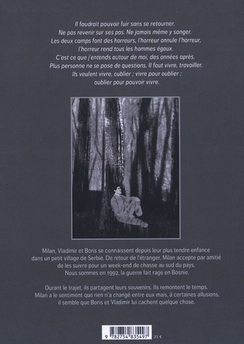 Il faudrait pouvoir fuir sans se retourner. Ne pas revenir sur ses pas. Ne jamais même y songer. Les deux camps font des horreurs, l'horreur annule l'horreur, l'horreur rend tous les hommes égaux. C'est ce que j'entends autour de moi, des années après. Plus personne ne se pose de questions. Il faut vivre, travailler. Ils veulent vivre, oublier ; vivre pour oublier ; oublier pour pouvoir vivre. Milan, Vladimir et Boris se connaissent depuis leur plus tendre enfance dans un petit village de Serbie. De retour de l'étranger, Milan accepte par amitié de les suivre pour un week-end de chasse au sud du pays. Nous sommes en 1992, la guerre fait rage en Bosnie. Durant le trajet, ils partagent leurs souvenirs. Ils remontent le temps. Milan a le sentiment que rien n'a changé entre eux mais, à certaines allusions, il semble que Boris et Vladimir lui cachent quelque chose.