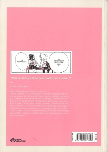 Chère Kabi Nagata. C'est Kabi Nagata. Comment vas-tu ? Après Solitude d'un autre genre, livre dont j'illustrais ma vie autour de ma rencontre avec une prostituée lesbienne, je commence la tenue de ce journal que je t'adresse afin de poursuivre ma démarche introspective. Car depuis que mon livre est paru, il faut vivre ma vie "d'après" : les effets sur ma famille de ma... mis à nu et de mon coming out, l'amitié... Sans oublier l'amour, maintenant que j'ai affirmé ma sexualité. Aujourd'hui encore, je cherche qui je suis et comment je peux être moi-même.