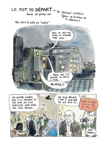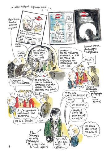 Des salles de rédaction à la machine à café, Mathieu Sapin dévoile les coulisses de Libération. Présent pendant le changement de direction, il a circulé en libre accès dans les locaux et a côtoyé l'équipe durant un temps fort de la vie du journal. Carnets et crayons en mains, il a croqué les petits et grands moments qui animent le quotidien d'une des plus importantes rédactions de presse écrite...