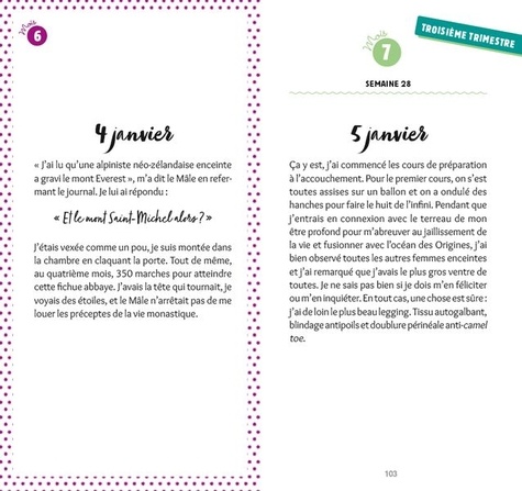 Halte aux clichés, place à la vérité ! Plongez dans l'univers de Maryline Kuehn, plus connue sous le pseudo de Colombe Linotte, qui dépeint avec beaucoup d'humour (et de justesse !) la vertigineuse aventure de la grossesse. Petits tracas, grandes énigmes et angoisses universelles, neuf mois intenses et riches en questionnements auxquels elle apporte un éclairage unique et déjanté. Mon programme télé a subi de profondes modifications. Les enquêtes du commissaire Larosière sur France 3 sont devenues bien trop violentes pour moi, alors je regarde avec une certaine passion les replays de Fort Boyard. J'ai été particulièrement émue lorsqu'un candidat a ENFIN réussi l'épreuve de la Fabrique à Ketchup, réputée infaisable (le secret consiste à ne pas tomber dans la sauce avant de traverser le tunnel). Pour l'instant, mes copines ne savent pas que je suis enceinte. Je suis juste une personne lambda qui jette un oeil sur Google avant de croquer dans un cake au jambon et qui demande à titre indicatif s'il y a de la Fourme d'Ambert dans la tapenade. Pour l'instant, mes collègues ne savent pas que je suis enceinte. Je suis juste une personne lambda qui mange un morceau de camembert à dix heures, deux bananes à onze heures et l'équivalent de quatre-vingt dix mille calories de nouilles chinoises réparties sur l'après-midi. Et parfois, un tic-tac pour me donner un coup de fouet.