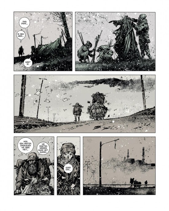 Met De Weg keer je terug naar de hopeloze wereld, vol duisternis, kou en hardheid die je al heb geïllustreerd in de serie Blast of in je bewerking van Philippe Claudels roman Het verslag van Brodeck. Wat trok je nog meer aan in McCarthy’s roman?