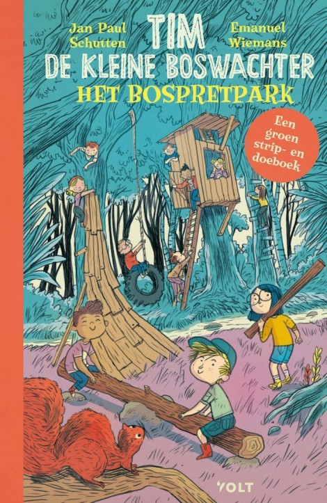 Een groen strip- en doeboek Wat een pech! Het schoolreisje kan niet doorgaan. De bus die iedereen zou brengen krijgt motorpech. Er is niet meteen een nieuwe bus beschikbaar, daarom wordt het schoolreisje afgelast. Gelukkig heeft Tim een plan. Hij legt samen met zijn vader een pretpark aan in het bos. Met schommels van banden die aan takken hangen, een reuzenwip gemaakt van een omgevallen boom, Remy die een kar trekt, een superhoge klimboom, een huttenbouwwedstrijd en heel veel andere spelletjes. Voor wie niet genoeg van Tim de kleine boswachter kan krijgen is er nu dit speelse strip- en doeboek. Het stripverhaal over het nieuwe bospretpark van Tim wordt afgewisseld met zoekplaten, een quiz, een afmaakverhaal en tekenopdrachten. Meer Tim, meer bos, meer pret!