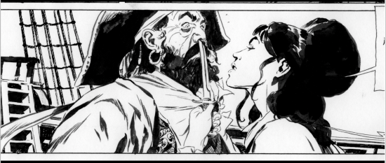 Om te beginnen, zou u ons kunnen bijpraten over deel 4 van Roodbaard? Hoe vordert het? Is er al een verschijningsdatum gepland? Zou het mogelijk zijn om een exclusief voorproefje van een stripframe te krijgen?