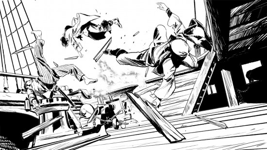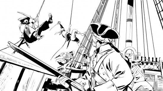 Oui, récemment, j'ai eu l'opportunité de collaborer étroitement avec le studio de développement Microids sur le projet excitant du jeu vidéo "Flint, Treasure of Oblivion", dont la bande-annonce a été révélée au public il y a quelques semaines sur tous les canals des reseaux sociaux. Microids m'a contacté à travers l'éditeur Dargaud, séduit par mon travail artistique, et m'a proposé de rejoindre leur équipe pour ce projet captivant, une proposition que j'ai immédiatement acceptée avec enthousiasme, d'abord car il s'agissait des pirates, mais même car j'aime bien de faire quelques choses de nouveau.