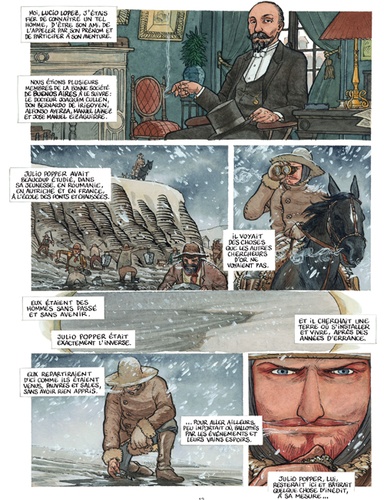 «Julio Popper, s'il avait été espagnol et était né quelques siècles plus tôt, aurait fait un formidable conquistador. Il ne fait aucun doute qu'il était de la trempe de ceux qui font la conquête de pays entiers, qui âtissent des empires. Il pensait vite et juste, il mettait en pratique. Il voyait grand, il fourmillait d'idées, rien ne l'arrêtait. Il se plaisait à ridiculiser ses ennemis. Il n'avait peur de rien ni personne, il aimait en découdre.» Né en 1857 en Roumanie, Julio Popper a parcouru la Terre. Son histoire nous emmène en Argentine, où il fait fortune avec l'or de Patagonie, fonde un état dans l'état et une monnaie. Il mourra dans des circonstances encore inexpliquées à Buenos Aires. Un destin hors norme et flamboyant. BD Ado-Adulte