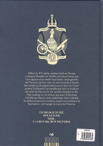 Début du XXe siècle, quelque part en Prusse. Ludwig et Oswald von Schlitt sont deux frères que tout oppose et au destin tout tracé : seuls garants de l'honneur de leur nom, ils sont envoyés à l'école des cadets où ils apprennent à servir leur roi, l'impopulaire Guillaume II, et perpétuent ainsi la tradition de cette famille où l'on est cavalier de père en fils. Mais Ludwig, lui, n'a d'yeux que pour la fameuse mitrailleuse Maxim, arme diabolique dont il décèle les failles et perce le mystère, jusqu'à succomber à sa fascination - et changer le cours de l'histoire.