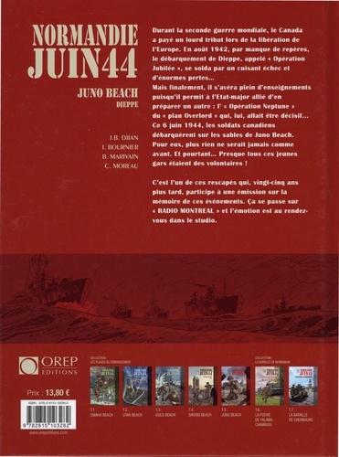 Durant la seconde guerre mondiale, le Canada a payé un lourd tribut lors de la libération de l'Europe. En août 1942, par manque de repères, le débarquement de Dieppe, appelé "Opération Jubilée", se solda par un cuisant échec et d'énormes pertes... Mais finalement, il s'avéra plein d'enseignements puisqu'il permit à l'Etat-major allié d'en préparer un autre : "Opération Neptune" du "plan Overlord" qui, lui, allait être décisif... Ce 6 juin 1944, les soldats canadiens débarquèrent sur les sables de Juno Beach. Pour eux, plus rien ne serait jamais comme avant. Et pourtant... Presque tous ces jeunes gars étaient des volontaires ! C'est l'un de ces rescapés qui, vingt-cinq ans plus tard, participe à une émission sur la mémoire de ces événements. Ca se passe sur "RADIO MONTREAL" et l'émotion est au rendez-vous dans le studio.