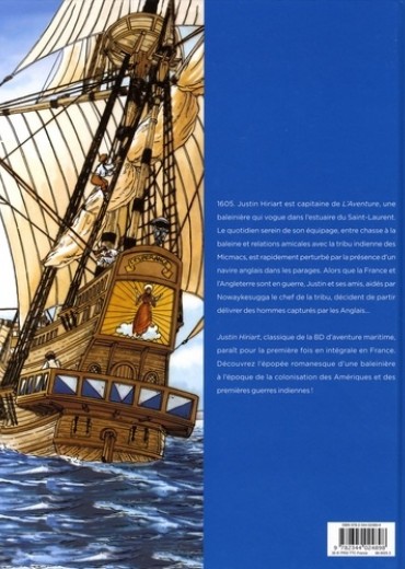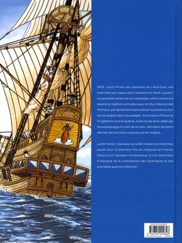 1605. Justin Hiriart est capitaine de L'Aventure, une baleinière qui vogue dans l'estuaire du Saint-Laurent. Le quotidien serein de son équipage, entre chasse à la baleine et relations amicales avec la tribu indienne des Micmacs, est rapidement perturbé par la présence d'un navire anglais dans les parages. Alors que la France et l'Angleterre sont en guerre, Justin et ses amis, aidés par Nowaykesugga le chef de la tribu, décident de partir délivrer des hommes capturés par les Anglais... Justin Hiriart, classique de la BD d'aventure maritime, paraît pour la première fois en intégrale en France. Découvrez l'épopée romanesque d'une baleinière à l'époque de la colonisation des Amériques et des premières guerres indiennes !