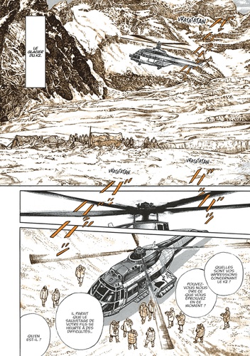 Personne ne connaît ni son vrai nom, ni son passé, pourtant K est le seul alpiniste assez rompu à la montagne et téméraire pour porter secours au jeune Nawan Door, fils d'un riche magnat du pétrole, coincé en haute montagne. A plus de 8000 mètres sur les voix du K2, il est son dernier espoir ! 7 ans avant le Sommet des Dieux, Jirô Taniguchi livre une approche magnifique de la montagne, à la fois fascinante et dangereuse.