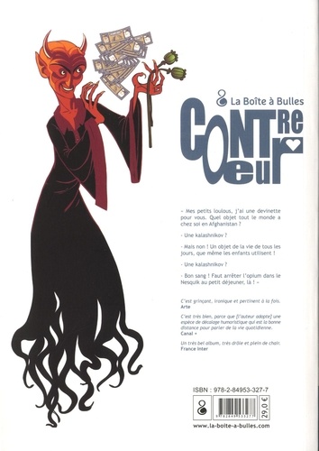 " Mes petits loulous, j'ai une devinette pour vous. Quel objet tout le monde a chez soi en Afghanistan ? - Une kalashnikov ? - Mais non ! Un objet de la vie de tous les jours, que même les enfants utilisent ! - Une kalashnikov ? - Bon sang ! Faut arrêter l'opium dans le Nesquik au petit déjeuner, là ! "