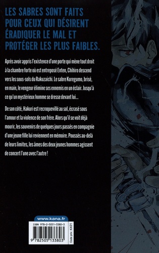 Après avoir appris l'existence d'une porte qui mène tout droit à la chambre forte où est entreposé Enten, Chihiro descend vers les sous-sols du Rakuzaichi. Le sabre Kuregumo, brisé, en main, le vengeur élimine ses ennemis en un éclair. Jusqu'à ce qu'un mystérieux homme se dresse devant lui... De son côté, Hakuri est recroquevillé au sol, écrasé sous l'amour et la violence de son frère. Alors qu'il se voit déjà mourir, les souvenirs de quelques jours passés en compagnie d'une jeune fille lui reviennent en mémoire. Poussés au-delà de leurs limites, les âmes des deux jeunes hommes agissent de concert l'une avec l'autre !