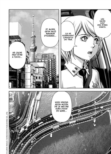 An X de l'ère Reiwa. Provoqué par une avalanche sous-marine, un terrible tsunami ravage la côte Pacifique. Toutefois, il n'est que le prologue de calamités à venir. Un an s'est écoulé depuis l'attaque du Fugaku. Désormais, la Kaijû Defense Force est officiellement en activité. Or, voilà qu'une nouvelle créature surnaturelle fait son apparition à Tokyo. Tout porte à croire qu'il s'agit du premier spécimen identifié, nommé "Orochi" , à son stade juvénile. Mais cette fois, le kaijû semble profiter des ténèbres pour se glisser dans une zone habitée... Kaijû Defense Force est la nouvelle série de Junya Inoue, auteur de Btooom ! et La Vie en doll. Découvrez un récit d'action, ultra réaliste, qui mêle technique militaire, mechas et kaijû, publié dans le magazine Comic Brunch, périodique phare de Shinchôsha.