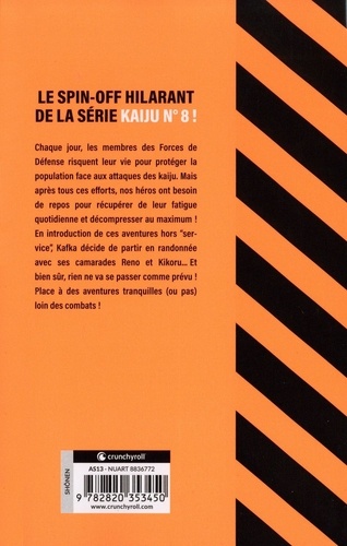 Chaque jour, les membres des Forces de Défense risquent leur vie pour protéger la population face aux attaques des kaiju. Mais après tous ces efforts, nos héros ont besoin de repos pour récupérer de leur fatigue quotidienne et décompresser au maximum ! En introduction de ces aventures hors "service", Kafka décide de partir en randonnée avec ses camarades Reno et Kikoru... Et bien sûr, rien ne va se passer comme prévu ! Place à des aventures tranquilles (ou pas) loin des combats !