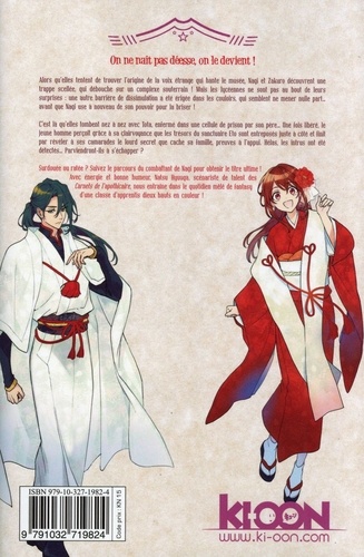 On ne naît pas déesse, on le devient ! Alors qu'elles tentent de trouver l'origine de la voix étrange qui hante le musée, Nagi et Zakuro découvrent une trappe scellée, qui débouche sur un complexe souterrain ! Mais les lycéennes ne sont pas au bout de leurs surprises : une autre barrière de dissimulation a été érigée dans les couloirs, qui semblent ne mener nulle part... avant que Nagi use à nouveau de son pouvoir pour la briser ! C'est là qu'elles tombent nez à nez avec Tota, enfermé dans une cellule de prison par son père... Une fois libéré, le jeune homme perçoit grâce à sa clairvoyance que les trésors du sanctuaire Eto sont entreposés juste à côté et finit par révéler à ses camarades le lourd secret que cache sa famille, preuves à l'appui. Hélas, les intrus ont été détectés... Parviendront-ils à s'échapper ? Surdouée ou ratée ? Suivez le parcours du combattant de Nagi pour obtenir le titre ultime ! Avec énergie et bonne humeur, Natsu Hyuuga, scénariste de talent des Carnets de l'apothicaire , nous entraîne dans le quotidien mêlé de fantasy d'une classe d'apprentis dieux hauts en couleur !