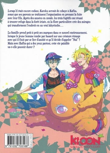 Un gamin errant, un voleur... et à leurs trousses l'organisation d'espions la plus dangereuse du pays ! Lorsqu'il était encore enfant, Karoku servait de cobaye à Kafka, avant que ses parents ne trahissent l'organisation en prenant la fuite avec leur fils. Après des années en cavale, les trois fugitifs ont réussi à trouver refuge dans la forêt irisée, où la flore particulière crée des mirages qui transforment l'endroit en un vrai labyrinthe... La famille prend petit à petit ses marques dans ce nouvel environnement, lorsque le jeune homme tombe par hasard sur une créature étrange avec qui il finit par se lier d'amitié et qu'il décide d'appeler "Nai' ! Mais avec Kafka qui a des yeux partout, cette vie paisible va-t-elle pouvoir durer ?