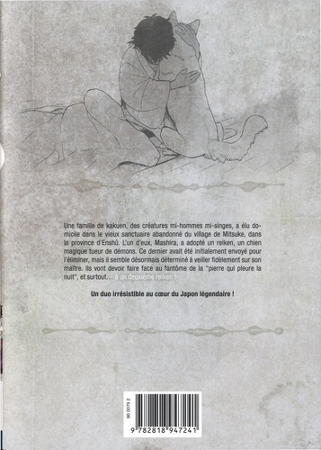 Une famille de kakuen, des créatures mi-hommes mi-singes, a élu domicile dans le vieux sanctuaire abandonné du village de Mitsuke, dans la province d'Enshû. L'un d'eux, Mashira, a adopté un reiken, un chien magique tueur de démons. Ce dernier avait été initialement envoyé pour l'éliminer, mais il semble désormais déterminé à veiller fidèlement sur son maître. Ils vont devoir faire face au fantõme de la "pierre qui pleure la nuit", et surtout... à un deuxième reiken ! Un duo irrésistible au coeur du Japon légendaire !