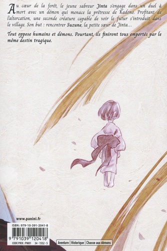 Le jeune vagabond Jinta a mis son sabre au service de Kadono, un petit village de montagne régulièrement attaqué par des démons. Le jour où l'un de ces monstres menace la prêtresse du sanctuaire local, Jinta part chasser la créature dans la forêt. Profitant de son absence, une démone capable de voir le futur s'introduit dans le village. Son but ? Rencontrer Suzune, la petite soeur de Jinta. Humains et démons... Deux routes vouées à se croiser, pour basculer dans le tourbillon d'un destin qui les emportera tous. Motoo Nakanishi a imaginé en 2011 le light novel qui est à l'origine du manga. Un roman est toujours en cours de parution (onze tomes au Japon) tandis que le manga en est à son cinquième volume. Les lecteurs français ont pu découvrir Yu Satomi à travers plusieurs séries comme Nuisible (sa première oeuvre en tant que dessinateur) ou Bloody Cruise dont il assure le scénario et le dessin. C'est en 2021 que les deux artistes se réunissent pour donner naissance au manga Kijin Gentôshô.