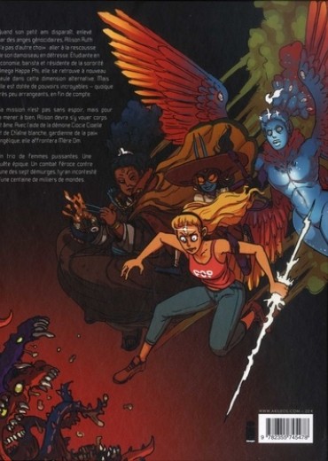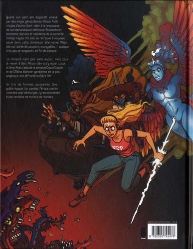 Quand son petit ami disparaît. enlevé par des anges génocidaires. Rllison Ruth n'a pas d'autre chois aller à la rescousse de son damoiseau en détresse. Etudiante en économie, barista et résidente de la sororité Omega Happa Phi, elle se retrouve à nouveau seule dans cette dimension alterna hue. mais elle est dotée de pouvoirs incroyables - quoique très peu arrangeants, en Fin de compte. Sa mission n'est pas sans espoir, mais pour la mener à bien, Allison devra s'y vouer corps et âme. Avec l'aide de la démone Ciocie Cioelle et de Chaîne blanche, gardienne de la paix angélique, elle affrontera Mère Om. Un trio de Femmes puissantes. Une quête épique. Un combat Féroce contre l'une des sept démiurges, tyran incontesté d'une centaine de milliers de mondes.