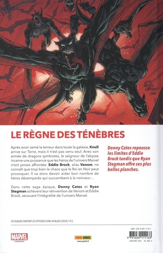 Knull est arrivé sur Terre ! Le Dieu des Symbiotes a la ferme intention de mettre la main sur Dylan Brock, le fils de Venom, et même s'il doit pour cela raser la planète. Tous les héros de l'univers Marvel s'allient contre le terrible vilain et ses hordes de dragons, mais les choses se compliquent lorsque certains d'entre eux passent à l'ennemi. Qui pourra vaincre Knull ? Les Avengers ? Venom ? Dylan ? Quelqu'un d'autre ? Voici l'apothéose du séjour de Donny Cates sur la série Venom. On retrouve aux côtés du scénariste, le dessinateur qui l'accompagne depuis le début de la saga : l'époustouflant Ryan Stegman. Un événement Marvel qui va marquer les esprits des lecteurs... et des héros !