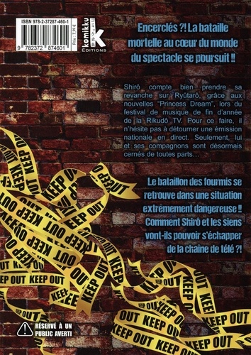 Encerclés ? La bataille mortelle au coeur du monde du spectacle se poursuit ! Shirô compte bien prendre sa revanche sur Ryûtarô, grâce aux nouvelles "Princess Dream", lors du festival de musique de fin d'année de la Rikudô TV. Pour ce faire, il n'hésite pas à détourner une émission nationale en direct. Seulement, lui et ses compagnons sont désormais cernés de toutes parts... Le bataillon des fourmis se retrouve dans une situation extrêmement dangereuse ! Comment Shirô et les siens vont-ils pouvoir s'échapper de la chaîne de télé ?
