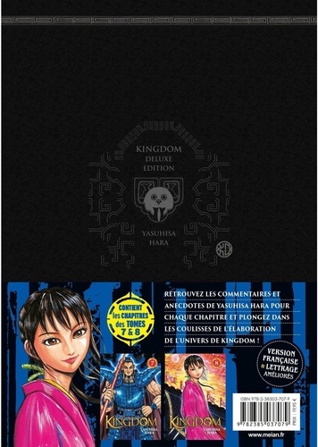 L'âme du Nekketsu dans un Seinen d'exception ! Fin de guerre imminente L'armée de Qin, inférieure en nombre et guidée par son commandant en chef Duc Hyô, s'apprête à lancer toutes ses forces dans une bataille décisive... Shin, désireux de prouver sa valeur militaire, se trouve de nouveau en première ligne ! Est-ce la stratégie qui l'emportera ou bien l'instinct ? Veux-tu parier avec moi ? L'édition ultime du manga phénomène aux plus de 100 millions de tomes vendus !! Edition luxueuse grand format avec couverture rigide dotée d'une jaquette embossée ornée d'une couleur métallisée chatoyante. Elle bénéficie d'une reliure dos cousu avec ruban signet. Chaque tome comprend deux volumes de l'édition standard et propose une version française revue et améliorée ainsi que des pages couleur inédites. Enfin, l'auteur livre des commentaires inédits sur la création de son chef-d'oeuvre pour chacun des chapitres !