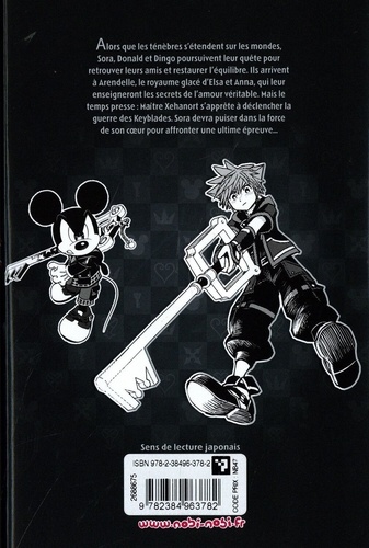 Alors que les ténèbres s'étendent sur les mondes, Sora, Donald et Dingo poursuivent leur quête pour retrouver leurs amis et restaurer l'équilibre. Ils arrivent à Arendelle, le royaume glacé d'Elsa et Anna, qui leur enseigneront les secrets de l'amour véritable. Mais le temps presse : Maître Xehanort s'apprête à déclencher la guerre des Keyblades. Sora devra puiser dans la force de son coeur pour affronter une ultime épreuve...