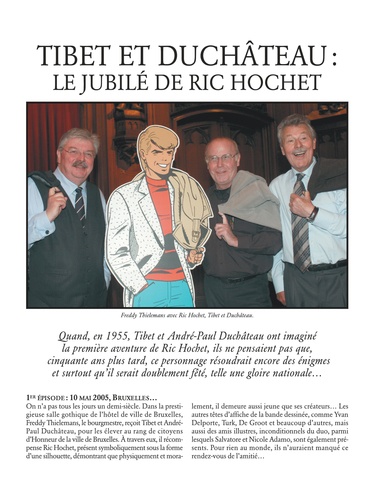 1955. Tout jeune créateur des aventures humoristiques du cow-boy Chick Bill, Tibet persuade son ami, le déjà fameux auteur de polars A. P Duchâteau, de scénariser, pour lui, des énigmes policières. Un dénommé Ric Hochet, petit vendeur du quotidien "La Rafale", apparaît ainsi dans l'hebdomadaire "Tintin" où, en quatre pages, il démasque un redoutable espion. Ce bref exploit marque, pour cet adolescent futé, le début d'une brillante carrière de journaliste d'investigation et d'indémodable héros de BD. Secondé par le débonnaire commissaire Bourdon, conforté par l'affectueuse complicité de son amie Nadine, Ric Hochet résoudra une longue série de crimes. Enquêtes classiques ou à la limite du fantastique et de la science-fiction, tension, émotion, intuition, déduction, action : cette "Intégrale" vous présente toutes les affaires ténébreuses que sa perspicacité a élucidées et qui lui ont assuré une popularité rarement égalée.