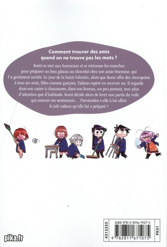 Komi se met aux fourneaux et se retrousse les manches pour préparer un bon gâteau au chocolat chez son amie Onemine, qui l'a gentiment invitée. Le jour de la Saint-Valentin, alors que Komi offre des chocopotos à tous ses amis, filles comme garçons, Tadano espère en recevoir un. Il regarde dans son casier à chaussures, dans son bureau, un peu partout, avec plus d'attention que d'habitude. Komi décide alors de lever une partie du voile qui entoure ses sentiments... Parviendra-t-elle à lui offrir le joli cadeau qu'elle lui a préparé ?