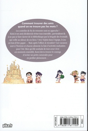 Les contrôles de fin de trimestre sont en approche ! Komi et ses amis décident de réviser tous ensemble ; parviendront-ils à ne pas se faire éjecter de la bibliothèque par la brigade des éventails qui veille au silence de ces lieux ? Avec Najimi dans l'équipe, le jeu est loin d'être gagné... Mais après l'effort, le réconfort ! Les vacances sont à l'horizon et chacun alimente la liste d'activités souhaitées pour l'été. Bien qu'elle souhaite de tout coeur vivre ces moments ensemble, Komi devra trouver le courage d'inviter ses petits camarades pour en profiter pleinement...