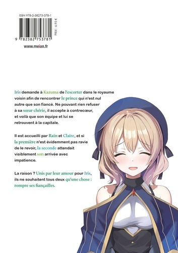 Iris demande à Kazuma de l'escorter dans le royaume voisin afin de rencontrer le prince qui n'est nul autre que son fiancé. Ne pouvant rien refuser à sa soeur chérie, il accepte à contrecoeur, et voilà que son équipe et lui se retrouvent à la capitale. Il est accueilli par Rain et Claire, et si la première n'est évidemment pas ravie de le revoir, la seconde attendait visiblement son arrivée avec impatience. La raison ? Unis par leur amour pour Iris, ils ne souhaitent tous deux qu'une chose : rompre ses fiançailles.