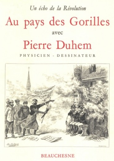 L'un des principaux buts de l'éducation de Jules Ferry étant de donner dans l'enseignement secondaire et supérieur une place prépondérante au matérialisme de Darwin, Au pays des Gorilles raconte le voyage d'une mission simiophile internationale fictive chez les gorilles et son retour à Paris, accompagnée d'un groupe de gorilles, mâles et femelles, jeunes et vieux. A Paris, tous les avantages - dans le domaine des finances, de l'éducation, des distractions et de la politique - sont donnés aux visiteurs simiesques, afin que leurs cousins humains, ces nouveaux venus sur l'arbre de l'évolution, puissent bénéficier de la plus grande expérience de leurs ancêtres. Après avoir goûté à la civilisation moderne - y compris à une initiation maçonnique -, les gorilles décident qu'elle ne mérite pas d'être assimilée et déplorent le mépris qu'il est de bon ton d'éprouver pour les valeurs traditionnelles. Pour les lecteurs contemporains, les allusions à Charles-Thomas Floquet, homme de gauche et militant, préfet de la Seine au début des années 1880, étaient claires. Il en est de même de Paul Bert, ministre de l'instruction publique et des Affaires de l'Eglise à cette époque. Epuisé depuis de nombreuses années, introuvable puisqu'édité avant la création du dépôt légal. Au pays des Gorilles rappelle les conséquences antireligieuses de la Révolution française, avec plein de malice et plein d'humour, dévoile un aspect mal connu de la personnalité de Pierre Duhem, met en relief son talent de dessinateur digne de celui de nos plus grands caricaturistes. Mais la notoriété de Pierre Duhem reste celle du savant éminent. Il a donc semblé opportun, en cette année du Bicentenaire de la Révolution, de réimprimer l'album Au pays des Gorilles et d'ouvrir ainsi la série "Beauchesne Humour"