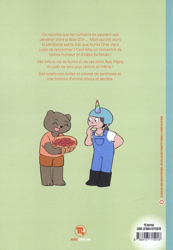 On raconte que les humains ne peuvent pas pénétrer dans le Bois d'Or... Mais qui est alors la pétillante petite fille que Kuma Orso vient juste de rencontrer ? C'est Mia, un concentré de bonne humeur et d'idées farfelues ! Dès lors, la vie de Kuma et de ses amis Red, Pigpig et Lady ne sera plus jamais la même ! Des aventures drôles et pleines de tendresse et une histoire d'amitié douce et secrète.