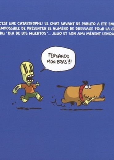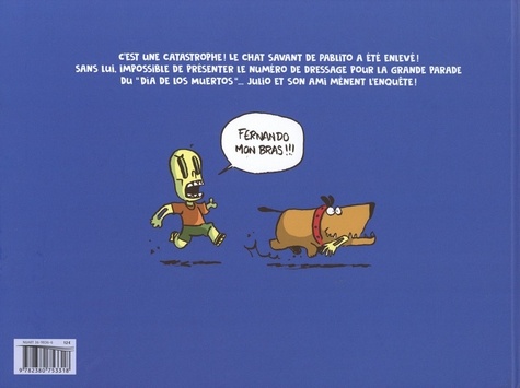 Aujourd'hui, c'est le grand jour : on fête les morts. Julio saute de son lit avec enthousiasme et dévore son petit-déjeuner. Il a fait le plein d'énergie et de bonne humeur. Dans son élan à courir dans les rues de la ville, il vient à bousculer un de ses amis, le petit squelette Pablito. Ce dernier est tout chamboulé, car son chat Abelito a disparu. Or il a absolument besoin de lui pour le grand spectacle du soir. Ni une ni deux, Julio propose de l'aider et de partir en quête du félin. Et pour trouver un début de piste, rien de tel qu'un chien comme Fernando. Le souci c'est que le bestiaux apprécie beaucoup croquer des morceaux d'os de Pablito. Malgré quelques frayeurs, ils vont vite devenir amis et Fernando représentera une fidèle monture. Ensemble, ils affrontent une bande d'affreux jojos aussi bêtes que méchants. Grâce à leur courage, un nouvel ami les rejoint dans leur aventure et les méchants repartent vaincus et honteux. Ce nouvel ami va les guider jusqu'au petit matou et à une charmante demoiselle. Certains principes vont alors changer grâce à la jeune fille. Mais tout finira bien...