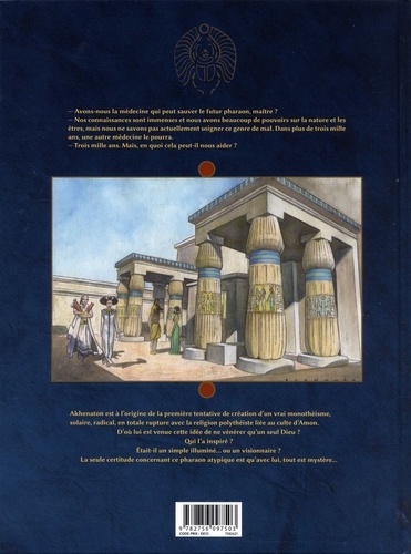 Amoureux de l'Egypte antique et de ses mystères, amateurs de thrillers ésotériques, embarquez avec Makyo pour un fabuleux et périlleux voyage mis en images avec finesse par deux dessinateurs au talent sûr. Néferkheperourê vient de naître. Fils d'Amenhotep III et de la reine Tiy, le futur Akhénaton est en danger de mort suite à un attentat contre la vie de sa mère. Le prêtre Anoukis s'en remet à son vieux maître banni, seul dépositaire de rituels oubliés. Pour lui, l'enfant doit rejoindre le temps où il pourra être soigné. Et c'est Anoukis qui l'accompagnera sur la barque des milliers d'années...