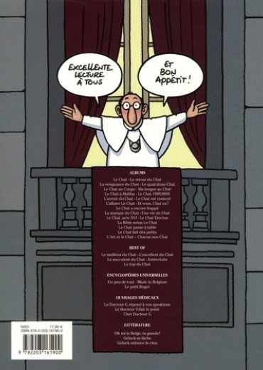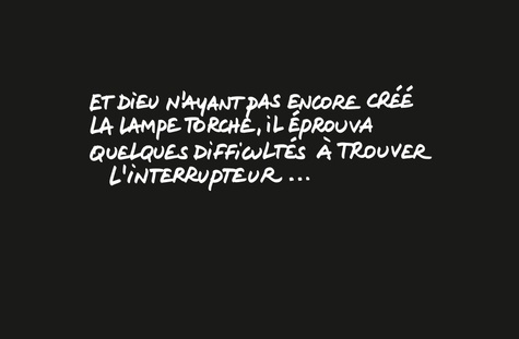 La Bible selon Le Chat répond à toutes les questions que se posent les humains depuis la nuit des temps. Fini le doute, voici la lumière. Avec cet album, la communauté des hommes va enfin comprendre pourquoi il était vain de s'entre-massacrer depuis tant d'années. La vérité sur tout cela, Le Chat nous la révèle dans son onzième commandement (le moins connu, sans doute le plus beau) : " Tu riras de tout, car, vu qu'on va tous crever un jour, seul l'humour te permettra d'avoir un peu de recul sur les vicissitudes de l'existence ".