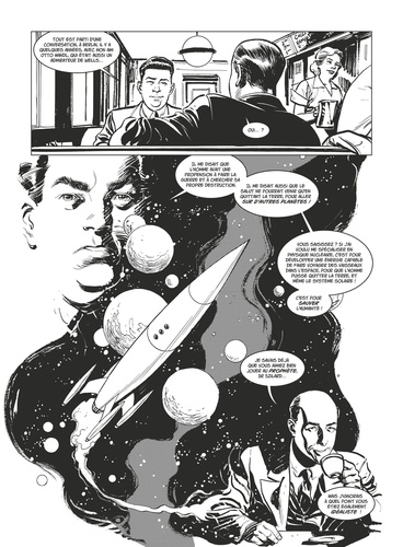 L'incroyable histoire vraie de l'arme la plus effroyable jamais créée. Le 6 août 1945, une bombe atomique ravage Hiroshima. Des dizaines de milliers de personnes sont instantanément pulvérisées. Et le monde entier découvre, horrifié, l'existence de la bombe atomique, première arme de destruction massive. Mais dans quel contexte, comment et par qui cet instrument de mort a-t-il pu être développé ? Véritable saga de 450 pages, ce roman graphique raconte les coulisses et les personnages-clés de cet événement historique qui, en 2020, commémore son 75e anniversaire. Des mines d'uranium du Katanga jusqu'au Japon, en passant par l'Allemagne, la Norvège, l'URSS et le Nouveau-Mexique, c'est une succession de faits incroyables mais vrais qui se sont ainsi déroulés. Tous ceux-ci sont ici racontés à hauteur d'hommes : qu'ils soient décideurs politiques (Roosevelt, Truman), scientifiques passés à la postérité (Einstein, Oppenheimer, Fermi...) ou acteurs majeurs demeurés méconnus, tels Leó Szilàrd (le personnage principal de cet album, un scientifique qui remua ciel et terre pour que les USA développent la bombe, puis fit l'impossible pour qu'ils ne l'utilisent jamais), Ebb Cade (un ouvrier afro-américain auquel on injecta à son insu du plutonium pour en étudier l'effet sur la santé) ou Leslie Groves (le général qui dirigea d'une main de fer le Projet Manhattan) - sans oublier, bien sûr, les habitants et la ville d'Hiroshima, reconstituée dans La Bombe de manière authentique. Extrêmement documenté mais avant tout passionnant, comparable en cela à la série TV Chernobyl, cet ouvrage s'impose déjà comme le livre de référence sur l'histoire de la bombe atomique.