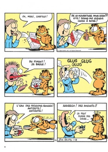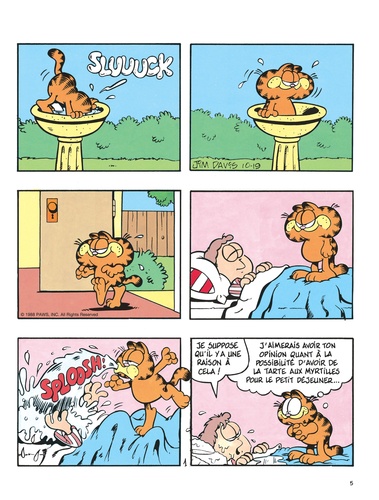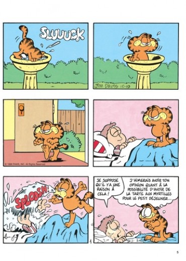 Le chat le plus paresseux de l'histoire de la BD voit le jour en 1978 dans la presse quotidienne et dominicale américaine. Garfield, adulé par son maître, peut savourer tout à loisir le plaisir de ne rien faire ; gras, toujours fatigué, toujours affamé, toujours bavard, il philosophe avec humour sur sa condition féline. En n'oubliant pas de s'alimenter et de se reposer, bien sûr...