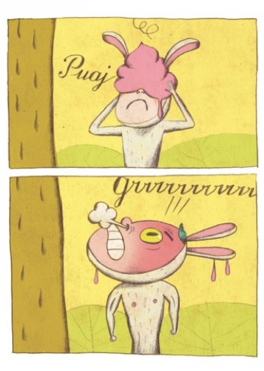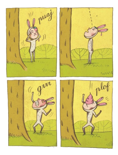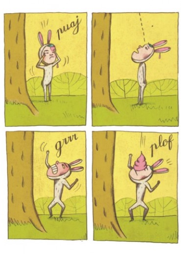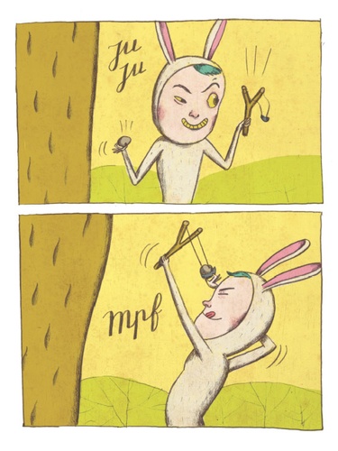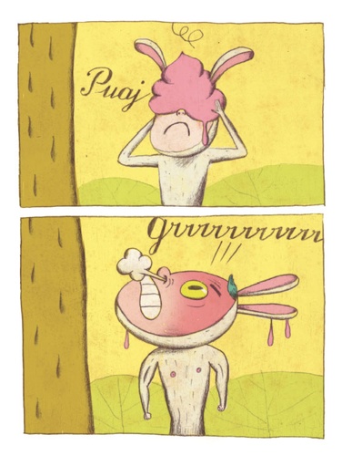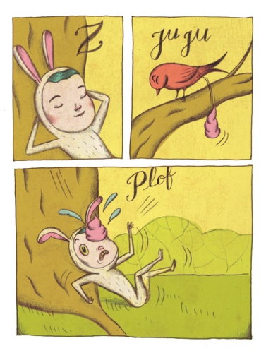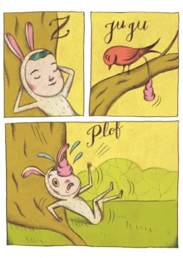 Un petit garçon déguisé en lapin fait tranquillement la sieste sous un arbre... Mais soudain, un petit oiseau le réveille et transforme sa vie en cauchemard... à moins que ce ne soit en rêve ?